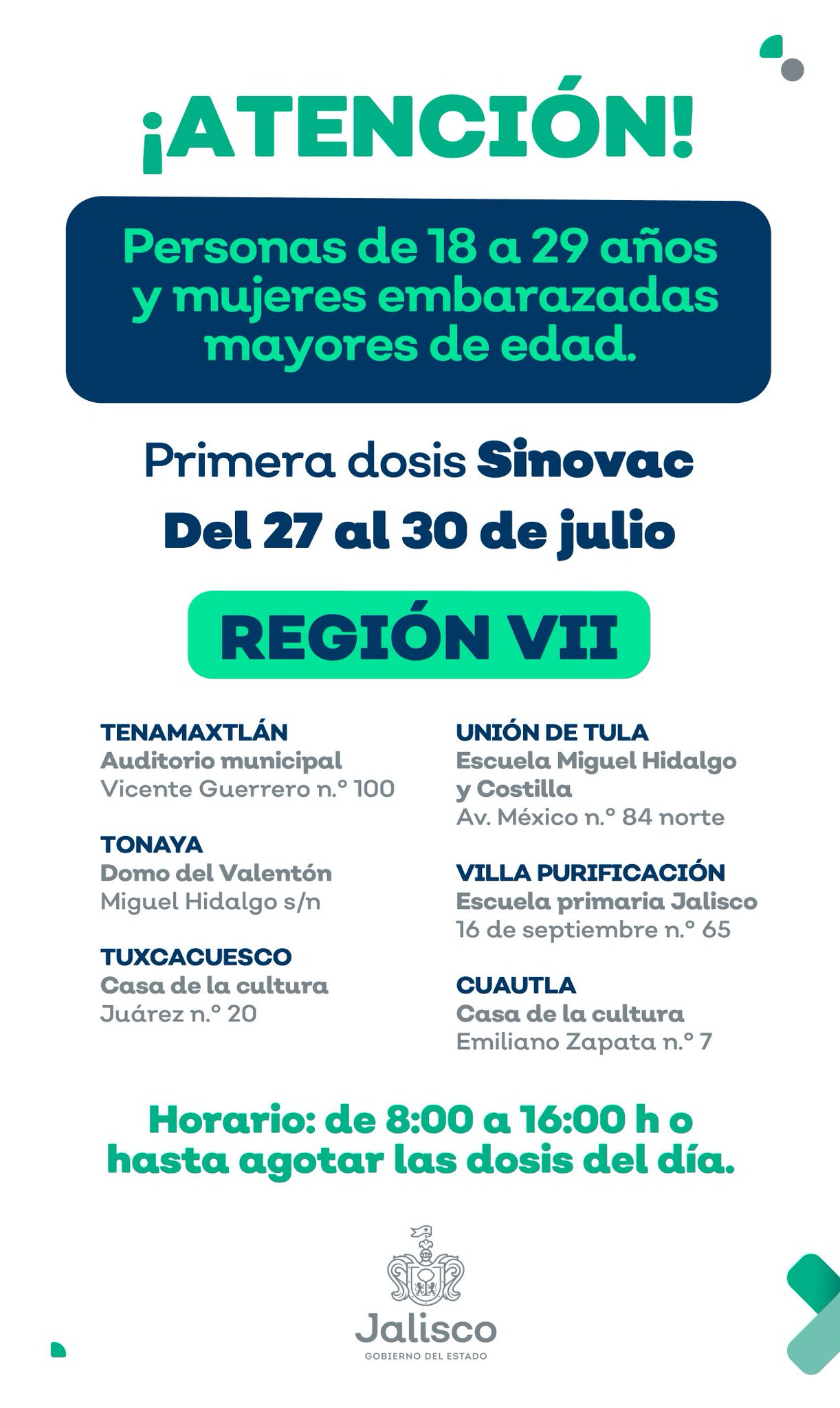 Secretaria De Salud Jalisco On Twitter Jalisco Este Martes 27 De Julio Iniciamos Con Las Jornadas De Vacunacion Contra Covid19 De Primera Dosis Para Personas De 18 A 29 Anos Asi Como